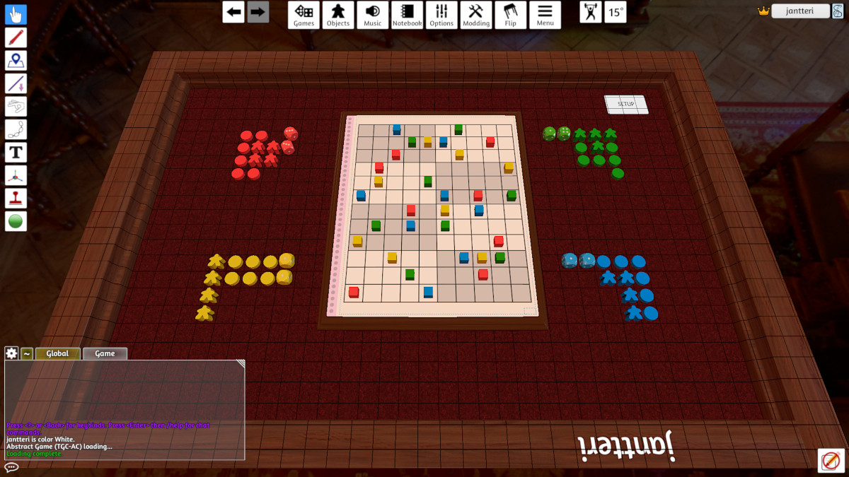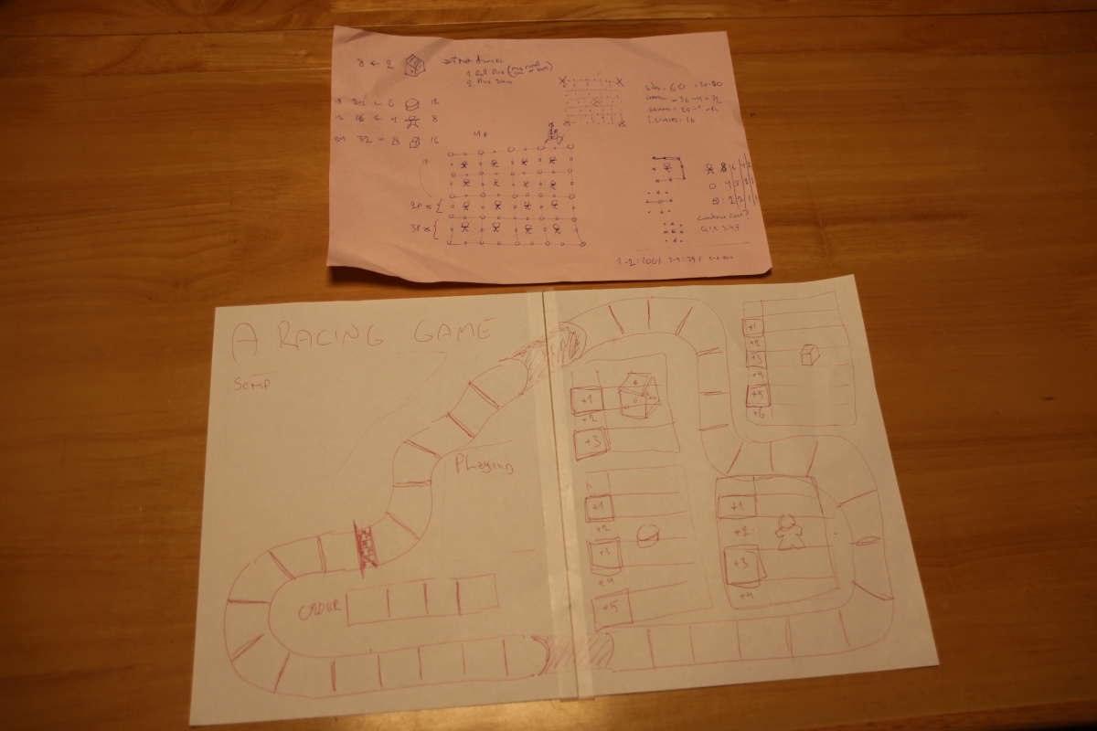 One of the ideas is inspired by Ricochet Robots. In other words, you move your meeple around the board in straight lines until hitting an object. The player who manages to collect all his/her cubes first wins. Proof-of-concept testing with my regular gaming group went quite well: there’s some promise, but this definitely needs some spicing (and theme) before it would be a contest worthy entry.